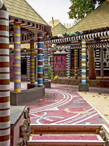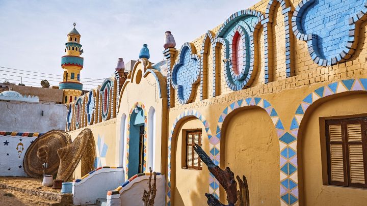 Denne nubiske landsbyen, full av fargerike hus, ligger ved Aswan i Egypt. Dekorasjonen bidrar til at stedet i dag har en betydelig turistindustri. Foto: Getty Images/Istockphoto