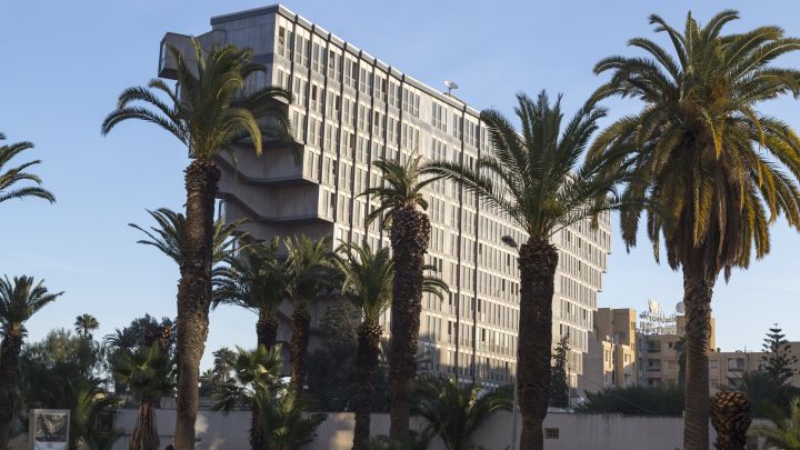 Hôtel du Lac i Tunisia, tegnet av arkitekt Raffaele Contigiani i 1973, er et fremtredende eksempel på afrikansk brutalisme. Dette hotellet står nå i fare for å bli revet. Foto: Getty Images/Istockphoto