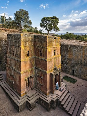 De fleste kirkene i Lalibela er fra 11- og 1200-tallet. De ble hugget ut i stein, altså som en del av fjellet som omgir dem. Anlegget består av et snaut dusin kirkebygg. Foto: Getty Images/Istockphoto