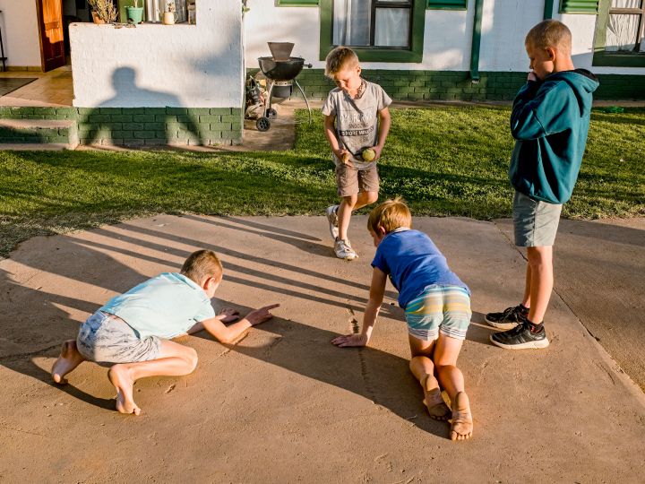 Orania-boere Johan og Bianc går kveldstur med barna Zane og Marcus.