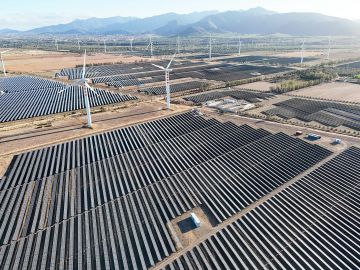Grønnere Sardinia er Italias siste region som skal kutte ut kullkraft, innen 2028. Vindturbiner og solcelleanlegg er oppført ved Cagliari. Foto: Giovanni Grezzi/AFP/NTB