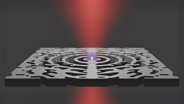 Nanolaser Forskere ved DTU har funnet opp en nanolaser, som er konstruert i en halvledermembran som får elektroner og lys til å samle seg i et lite område (blå skygge). Ved å bruke lys i stedet for elektriske signaler på mikrochips vil datahastigheten kunne økes og energitapet minskes. Illustrasjon: Yi Yu/DTU