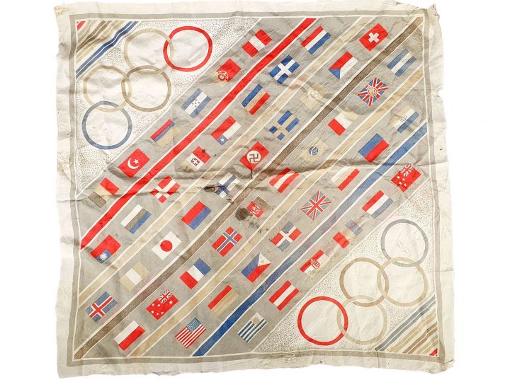 Bleket, men intakt Et skjerf med flaggene til deltagerlandene fra OL i Berlin i 1936 hadde historisk interesse for OL-museet på Lillehammer. Foto: Henrik P. Libell