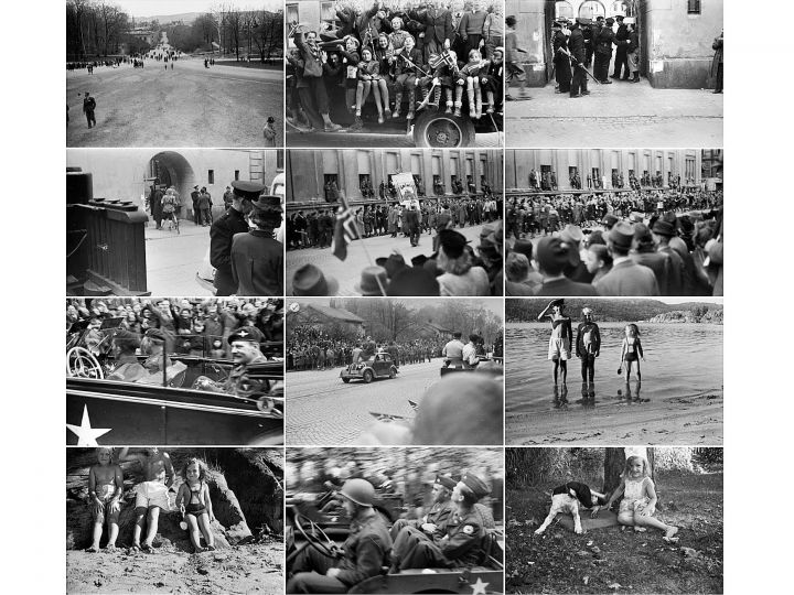 Oslo Museum: Innrammet tekst fra NS-regjeringen («Nordmenn! Plyndring kan straffes med døden»), juletreflagg fra ulovlig julefeiring, rasjoneringskort, NS-almanakken fra 1945 «Ny Dag», norske mynter, 1 kr, 5 kr, 5 øre m.fl. fra 1940–45, «kinoblokk» med bilder av Haakon 7.s hjemkomst, fotografier, bl.a. fem ruller, fra frigjøringen i Oslo mai og juni 1945, ulike fotografier, 1925–1974.
