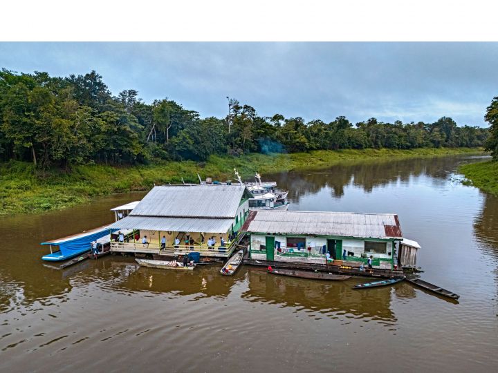 Mamirauá-instituttets flytende base ligger ved inngangen til reservatet med samme navn, et område på rundt 67 000 kvadratkilometer – nesten på størrelse med Irland – som utgjør verdens nest største område med vernet tropisk skog.