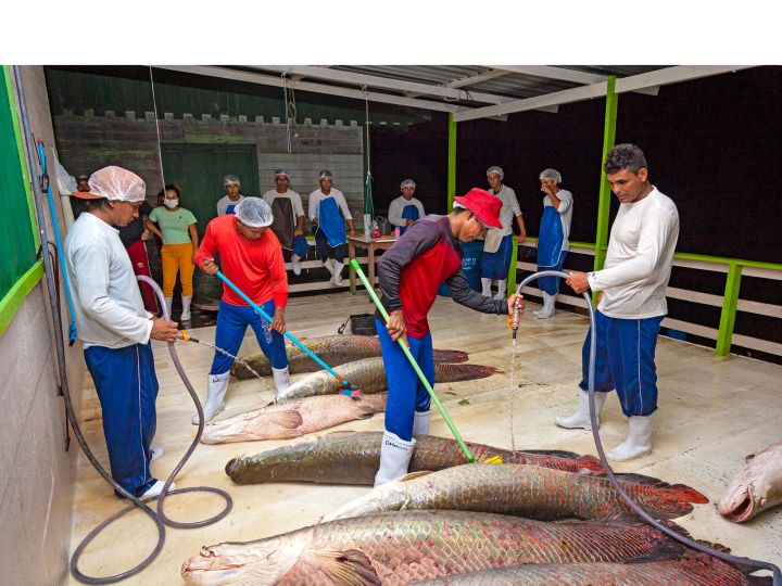 Ved Mamirauá-instituttets flytende base finnes et rom der fisken sløyes og skylles under optimale hygieniske forhold før den veies og klassifiseres. Deretter legges fisken i lasterommet på store båter og lagres på is under transport til byen. Tidligere ble fisken saltet fordi is ikke var tilgjengelig.