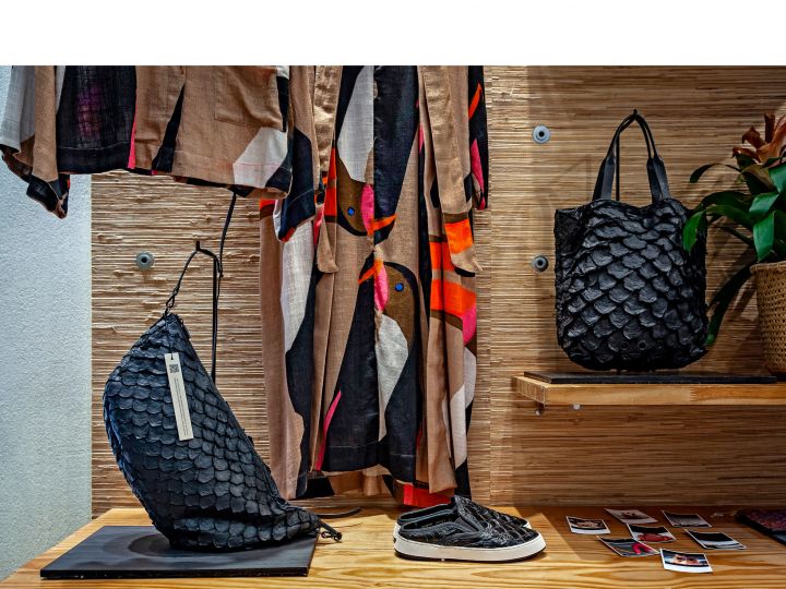 På det internasjonale markedet er det brasilianske merket «Osklen» blitt synonymt med ny luksus, takket være bruken av økologiske og miljøvennlige materialer som arapaima-skinn. I tillegg til vesker og bager brukes fiskeskinnet også til klær og sko. Alle foto: Marco Raccichini