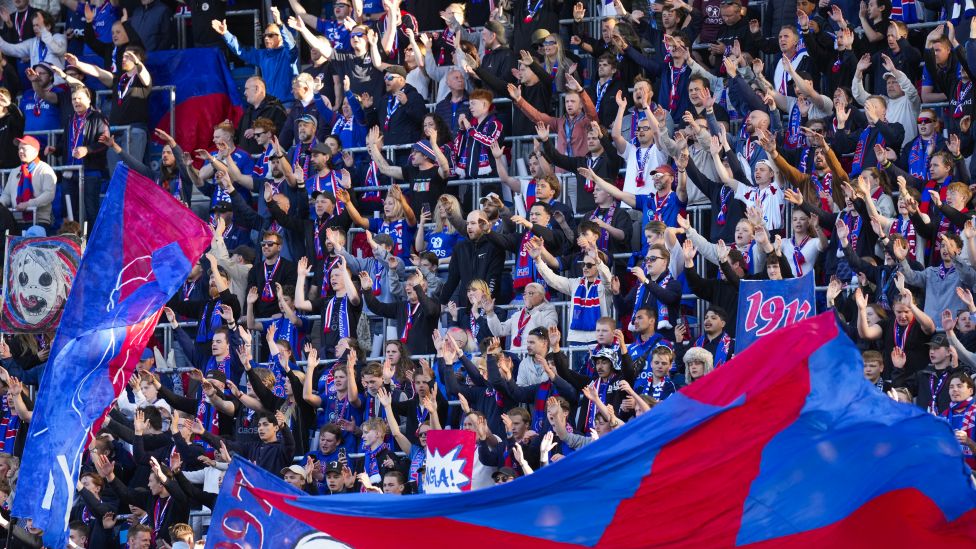 15 000 mennesker pekte mot svingen hvor rivalene fra HamKam satt. Til de muntre tonene av «Yellow Submarine» prøvde de å sette ut fiendene: