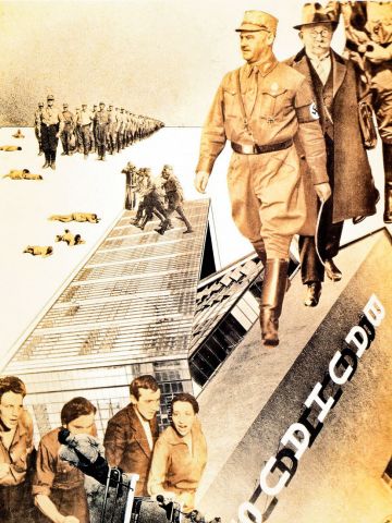 Bauhaus og nazistene Ikke bare for NSDAP og andre høyreradikale partier, men også for tradisjonelle konservative, ble Bauhaus-skolen tidlig en torn i øyet – både lokalt i Weimar og Dessau og senere nasjonalt. En eksperimentell og internasjonalt rettet skole, «åpen for alle», med en betydelig andel jødiske studenter – og ikke rent få «bevisst provoserende» personligheter, var også et nyttig fiendebilde. Collage av Iwao Yamawaki, 1932. Foto: NTB SCANPIX