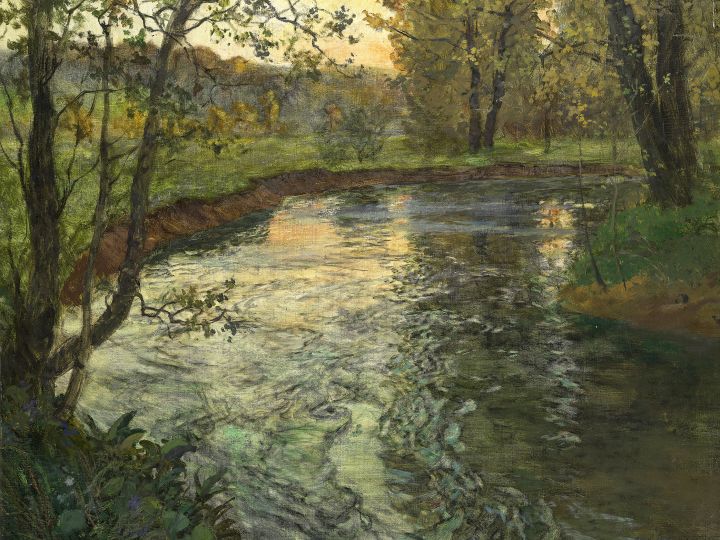 Lysspill Blant de utstilte verkene er Frits Thaulows «Bekken». Thaulow ble berømt for sitt friluftsmaleri, også kalt plein air (friluft på fransk). Foto: Gemäldegalerie