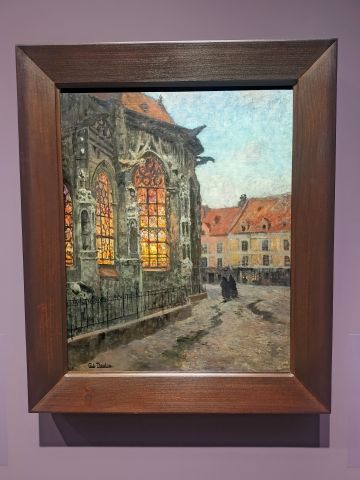 Glødende lys Frits Thaulow slo seg ned i Frankrike i 1892, der han også malte kirken med de lysende vinduene i maleriet «Aftenen». Museumsansatte i Berlin har identifisert kirken som Saint Jacques-katedralen i byen Dieppe.