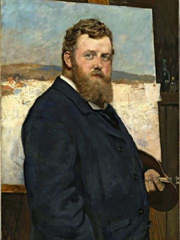 Ny utstilling i Norge Fra 20. september til 4. januar 2026 er friluftsmalerens verker viet en egen utstilling i Haugar kunstmuseum i Tønsberg. Her er Thaulow (1847–1906) portrettert av Christian Krohg i 1881.Foto: Nasjonalmuseet/Børre Høstland
