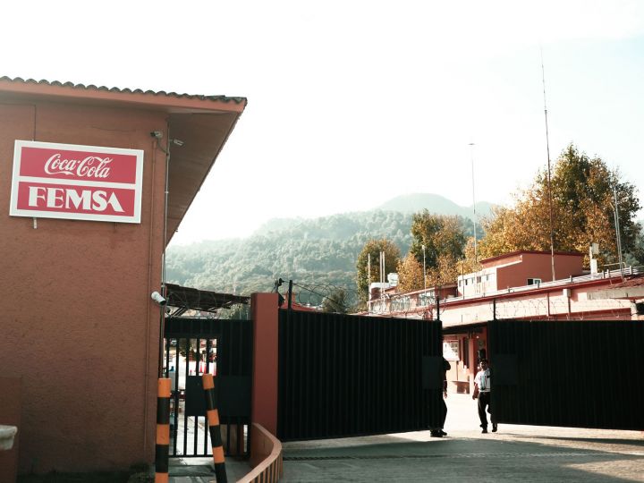 Tapperigigant Femsa er Coca-Colas største tapperi målt i volum. Selskapet opererer i ti latinamerikanske land, men har sitt mest lønnsomme marked i Mexico. Med to vann-lisenser, tilsvarende 1,3 millioner liter vann daglig, produseres sukkerbrus til flere land i regionen. Bildet er tatt ved inngangen til Femsas anlegg i San Cristóbal. Foto: Mikal T. Larsen