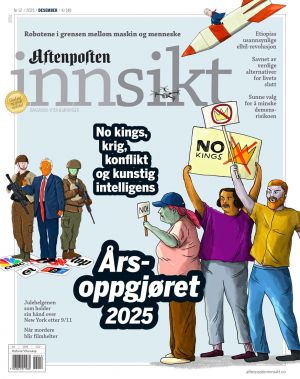 2025 går mot slutten, og i desemberutgaven av Aftenposten Innsikt oppsummerer vi tradisjonen tro året på godt og vondt – og noen stikkord er: No kings, krig, konflikt og kunstig intelligens. Bli også med til det avanserte techlaboratoriet i Kina som lager roboter i grensen mellom maskin og menneske eller la deg overraske over historien om Etiopia som ledestjerne i elbilrevolusjonen. Les også om de sunne valgene som kan minske demensrisikoen, om savnet av verdige alternativer for livets slutt, om julehelgenen som våker over New Yorks 9/11-traume, om sann og falsk giverglede – og mye mer. Vi ønsker alle våre lesere en fin førjulstid!