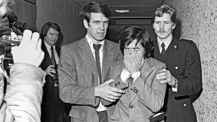 Første gang heroin beslaglagt i Oslo 4. desember 1976 gjorde norske tollere heroinkupp på Fornebu. To menn med pass utstedt i Singapore tas med 15–16 kg heroin til en verdi av 25 millioner kroner i koffertene. Oslo var blitt hovedinnfallsport for heroin til Europa. Høsten 1976 ble det smuglet inn minst 45 kg. Foto: NTB SCANPIX