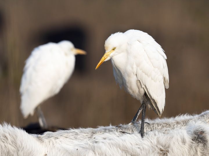 Den tredje hvite hegren heter kuhegre, et navn den har fått som følge av sin tilbøyelighet til å følge etter kyr og sauer mens den snapper insekter som dyrene virvler opp.