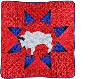 Stjerneteppe «White Bison Star», lakotastjerneteppe laget av Lula Red Cloud, fra utstillingen Native American Star Quilts på International Quilt Museum i Nebraska. Foto: interntaional-quiltsmuseum.org